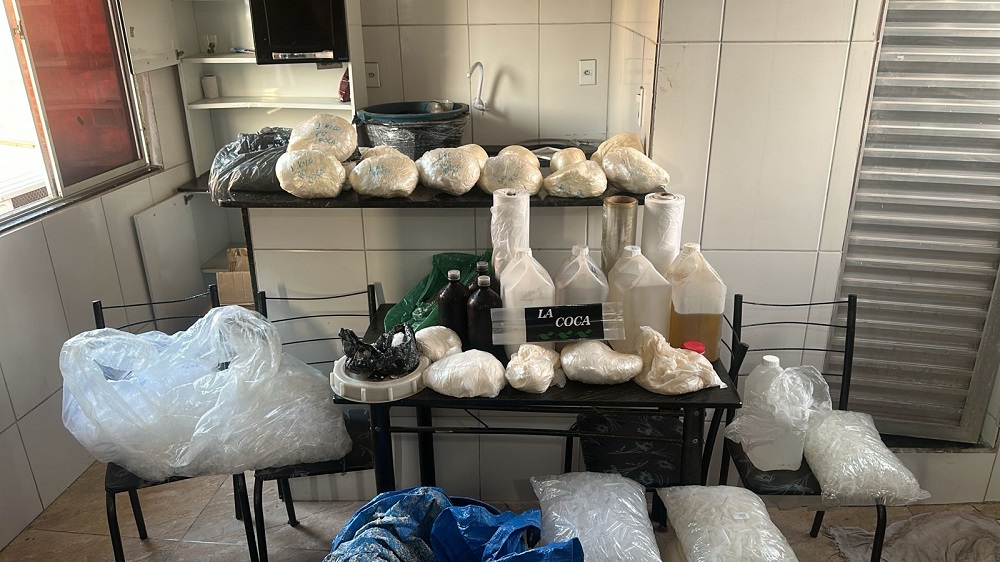 Criminosos incendiaram barricadas para tentar dificultar o avanço da polícia; com ajuda de cães farejadores, policiais acharam máquinas, insumos, armas e sacas de cocaína