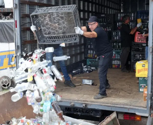 O material, cerca de 7 toneladas de vidro, foi encaminhado para uma empresa especializada em reciclagem após autorização judicial.