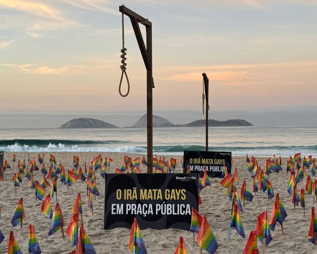 A presença da delegação do Irã na Cúpula do Brics, realizada neste domingo (6) e segunda-feira (7) no Rio de Janeiro, motivou um protesto organizado pela ONG StandWithUs na Praia de Ipanema.