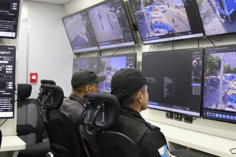 O núcleo central da área tecnológica da corporação monitora, por câmeras, a movimentação nas áreas de desfiles de escolas de samba, blocos de rua, orla marítima e outros pontos turísticos, além de rodovias e estações de transporte coletivo.