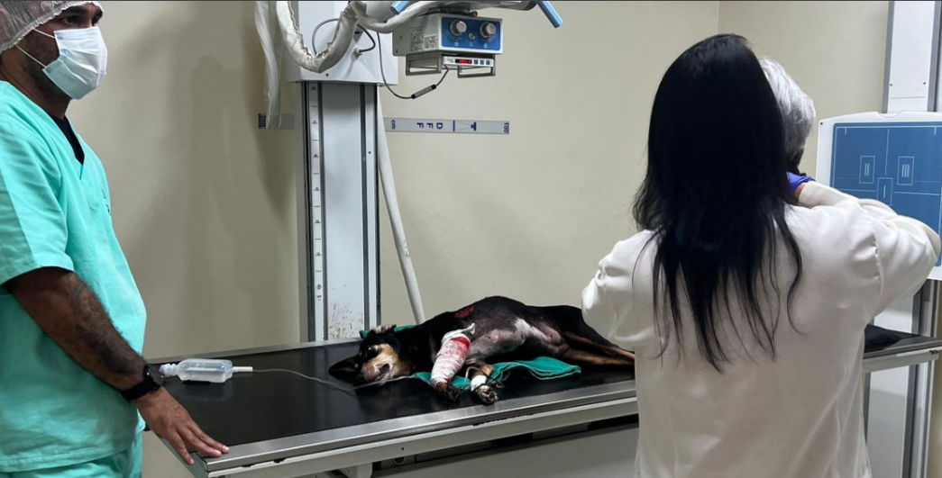 “O animal foi direto para o centro cirúrgico, para retirar os estilhaços da bala. Imediatamente, os veterinários fizeram a sutura do tórax e a cirurgia ortopédica da patinha, para evitar a amputação. Foi colocado um fixador externo”, relatou o vereador, acrescentando que “não estão descartadas novas cirurgias ortopédicas. Estamos fazendo de tudo para não ter que amputar”.